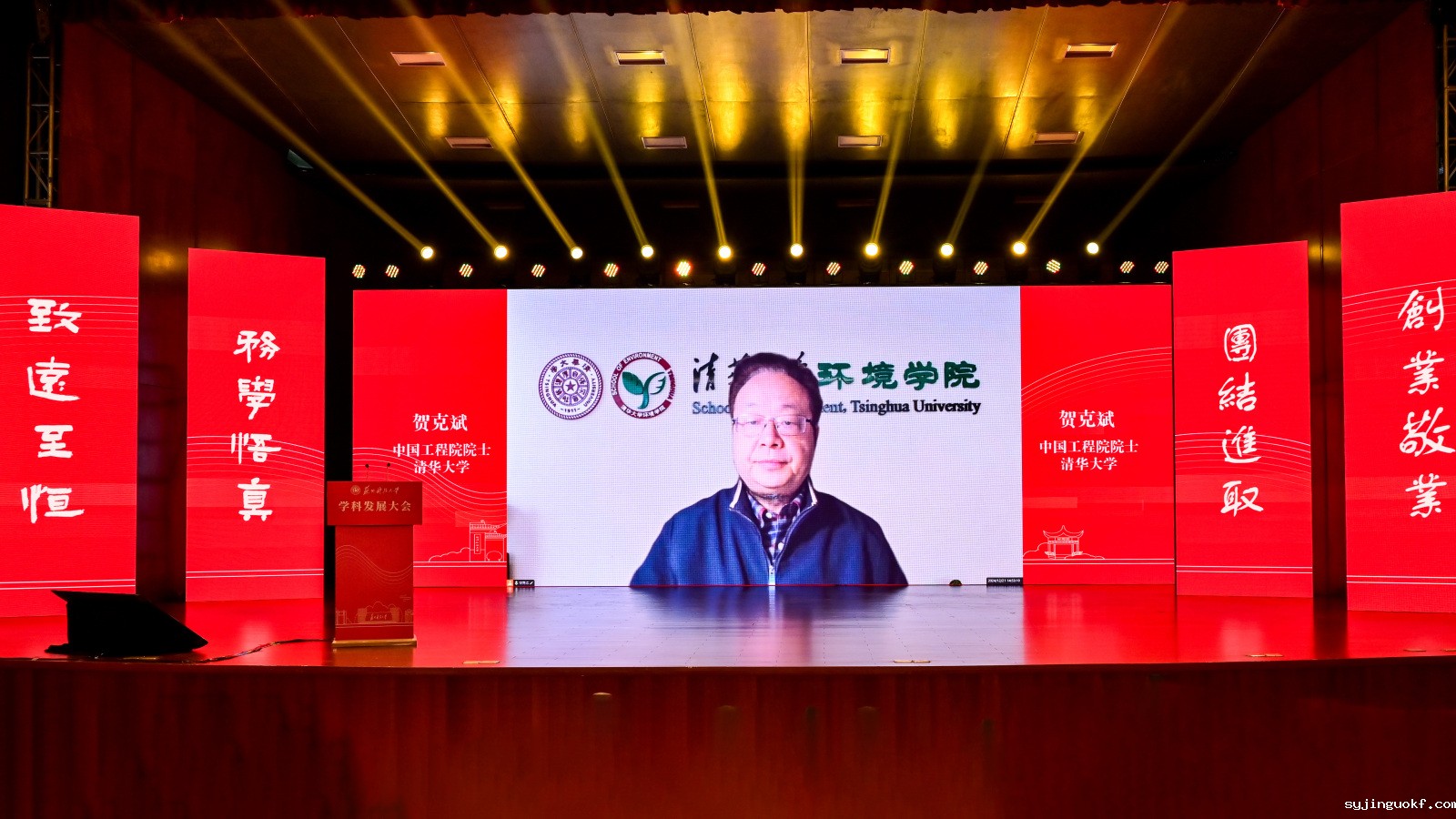 主旨报告环节由顾菊平主持。刘汉龙教授作《低碳发展新策略——生物建造》报告,中国工程院院士、清华大学贺克斌教授通过视频方式作《双碳行动与美丽中国建设——环境学科的机遇与挑战》报告,林梦泉研究员作《大学与学科分类评价》报告。
