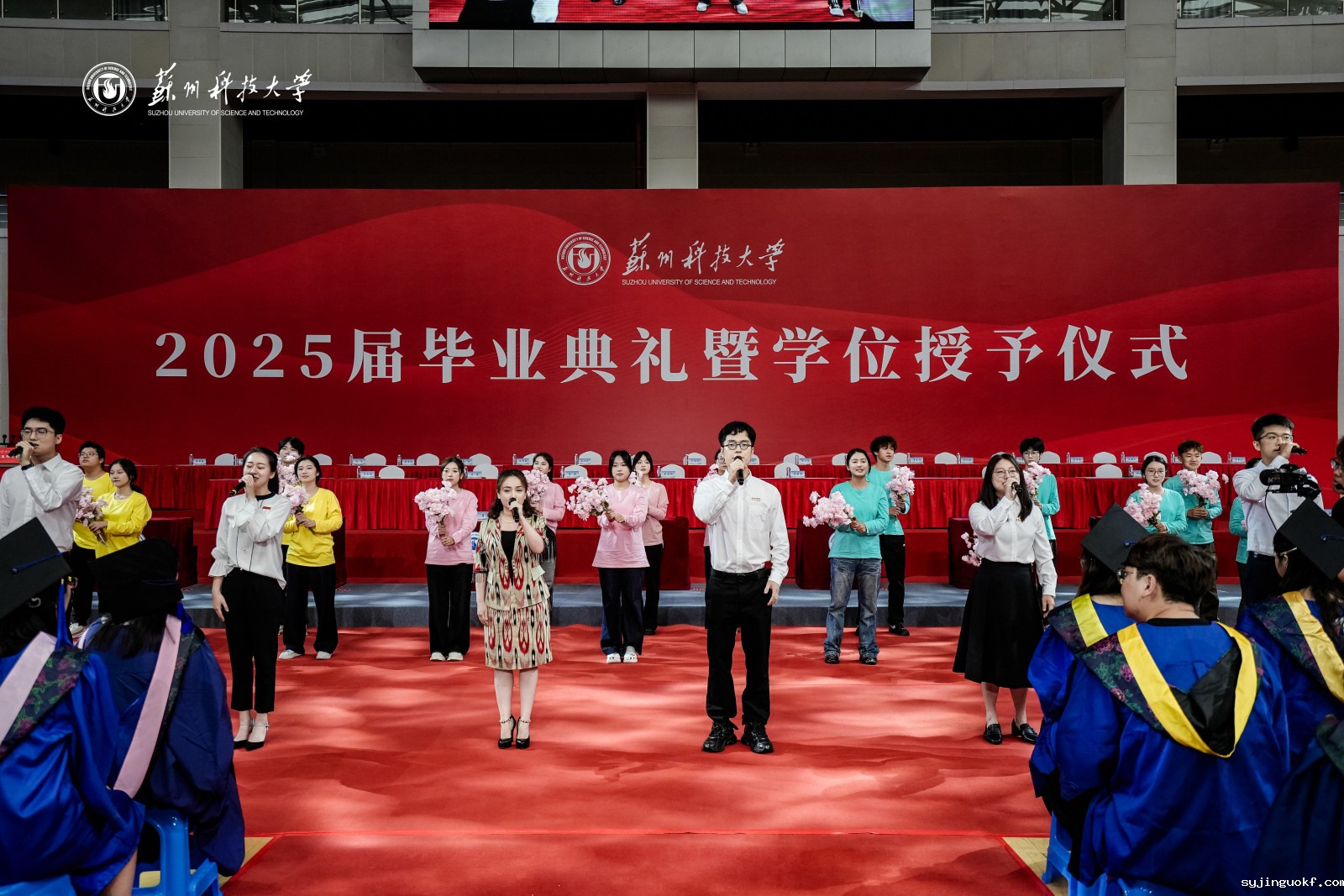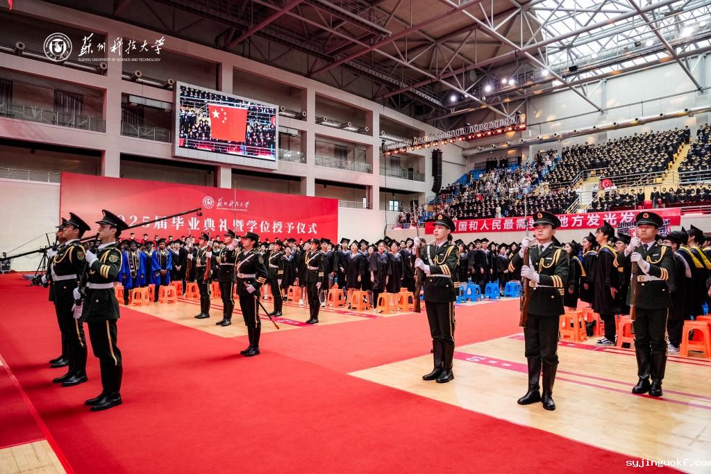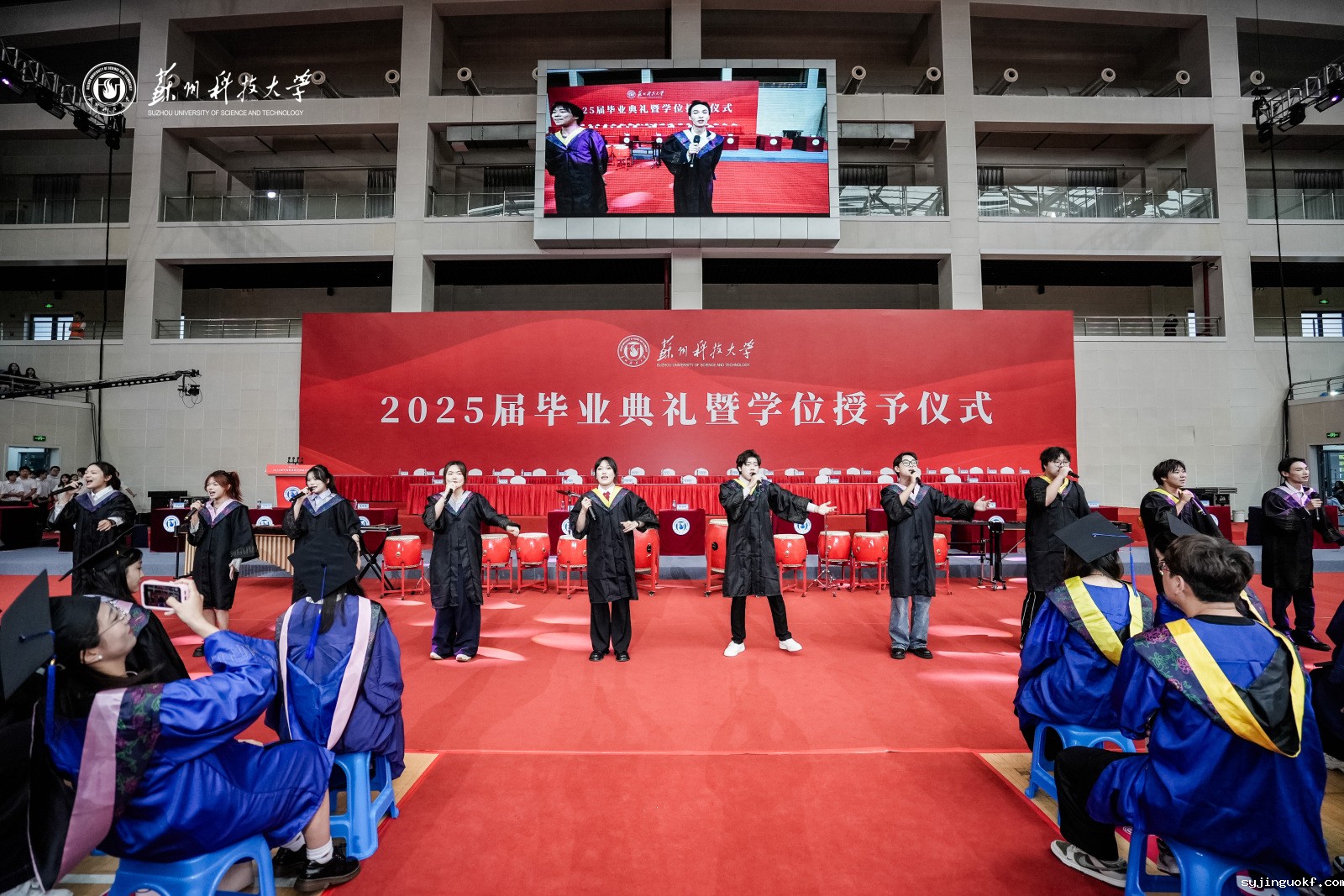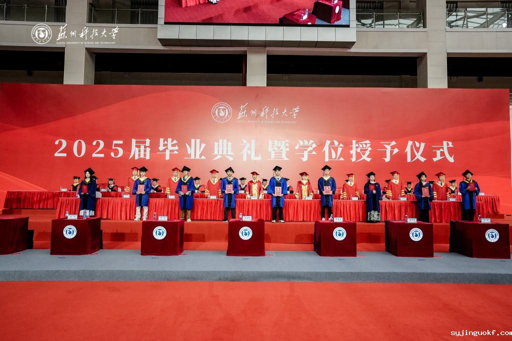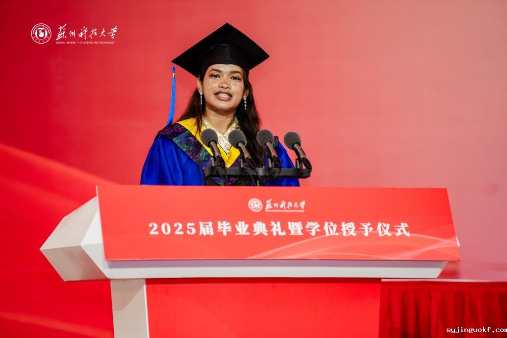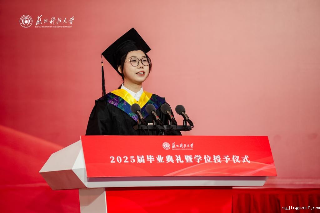 毕业生代表、电子与信息工程学院人工智能专业2021级本科生刘仪婷同学发言,表示四年来在苏科大收获的不仅是知识,更是成长的蜕变,感谢母校、师长、父母和同窗的陪伴,愿此去山河坦荡,归来仍是少年。留学生、硕士研究生代表、来自尼泊尔的阿茹娜同学发言,感谢学校营造了温馨的学习环境,将带着在苏科大收获的学识、价值观和友谊,勇毅前行。土木工程学院教授、博士生导师蒋明镜寄语毕业生们眼望人类文明的星空,脚踏祖国大地的厚土,以终身学习应变,以家国情怀导航,以全球视野开拓,躬行不辍,行稳致远。